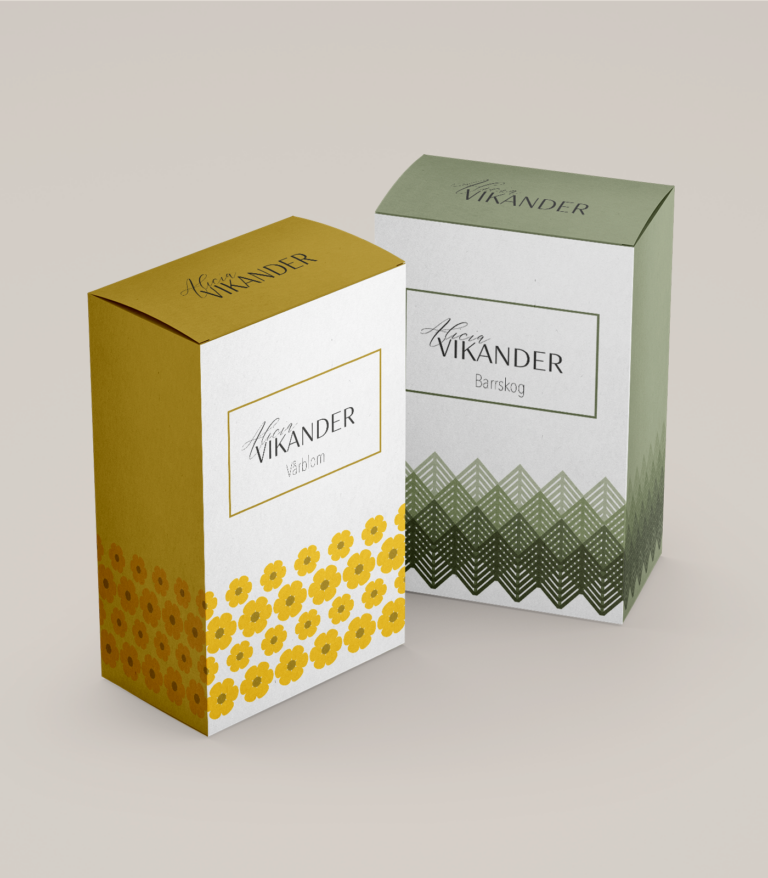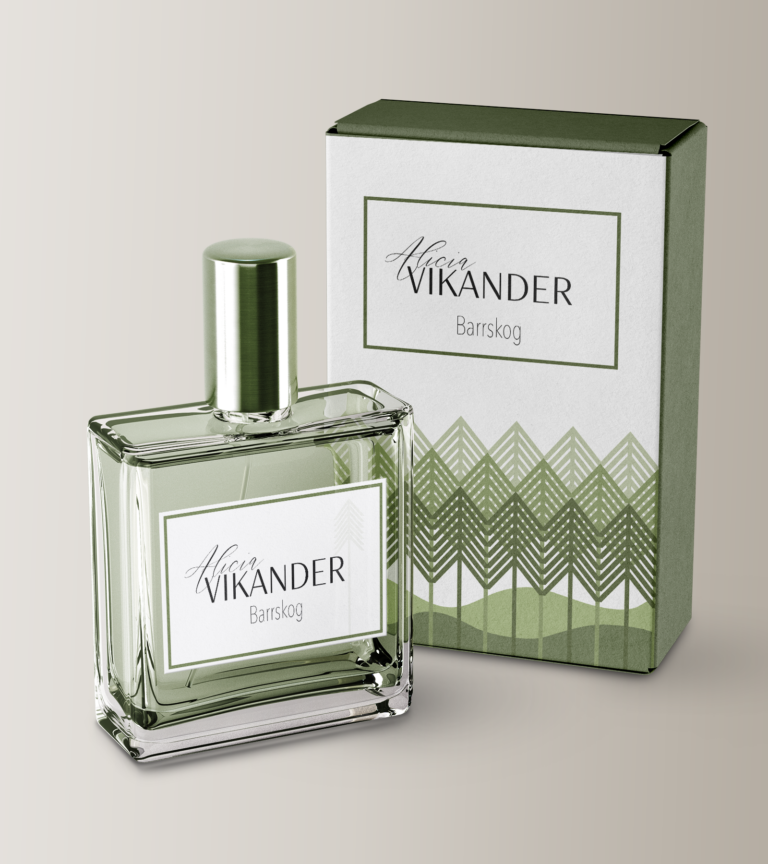 I went for a Scandinavian feel to my product. Each scent has its own color to be monotone. The patterns are relate to the scent and kept simple since Scandinavian designs usually keep things minimalistic. For the logotype, I went with a handwritten script to keep the feminine side of Alicia Vikander, while having her last name be uppercase letters in a thin, san-serif font to represent her strong side.