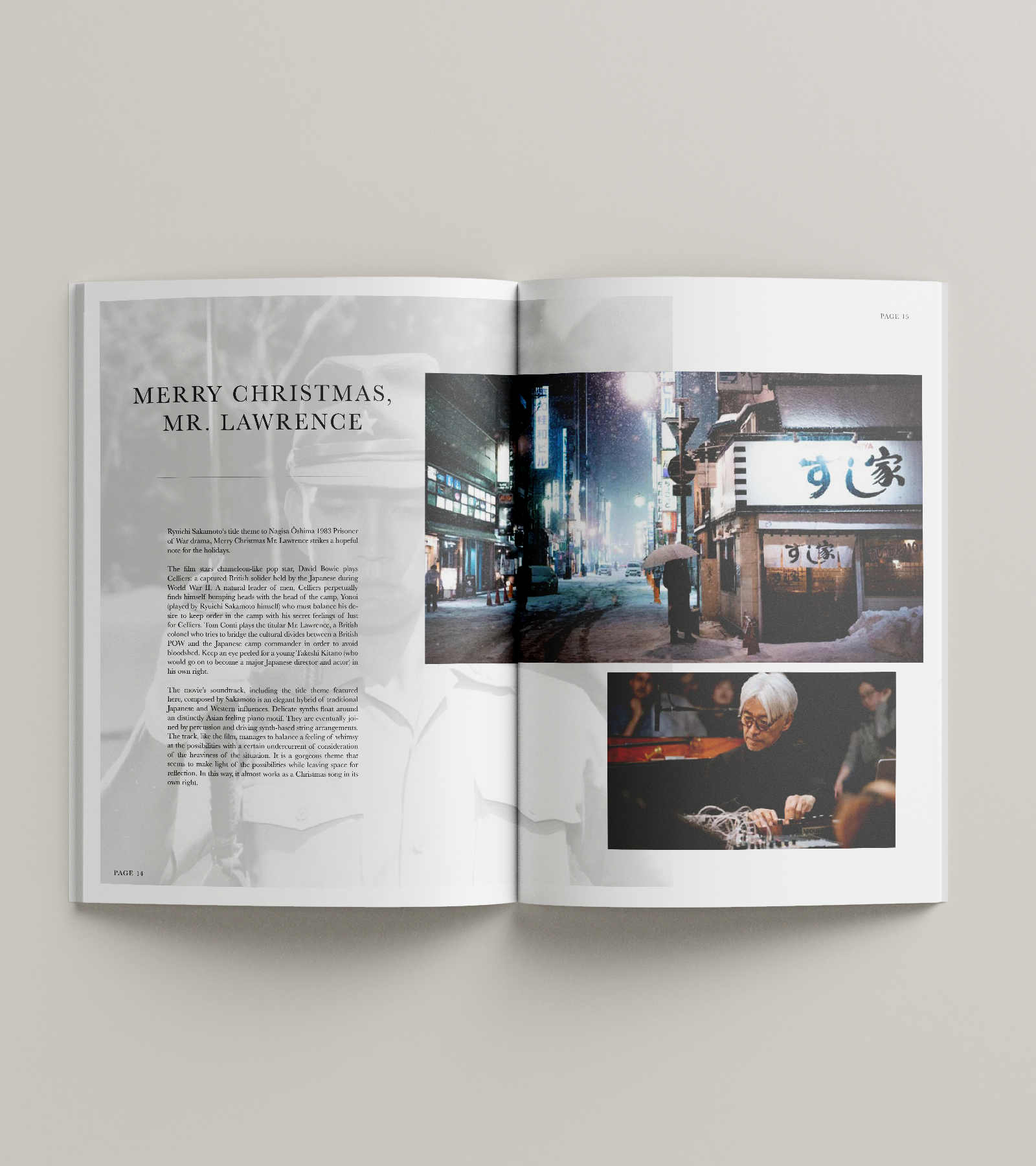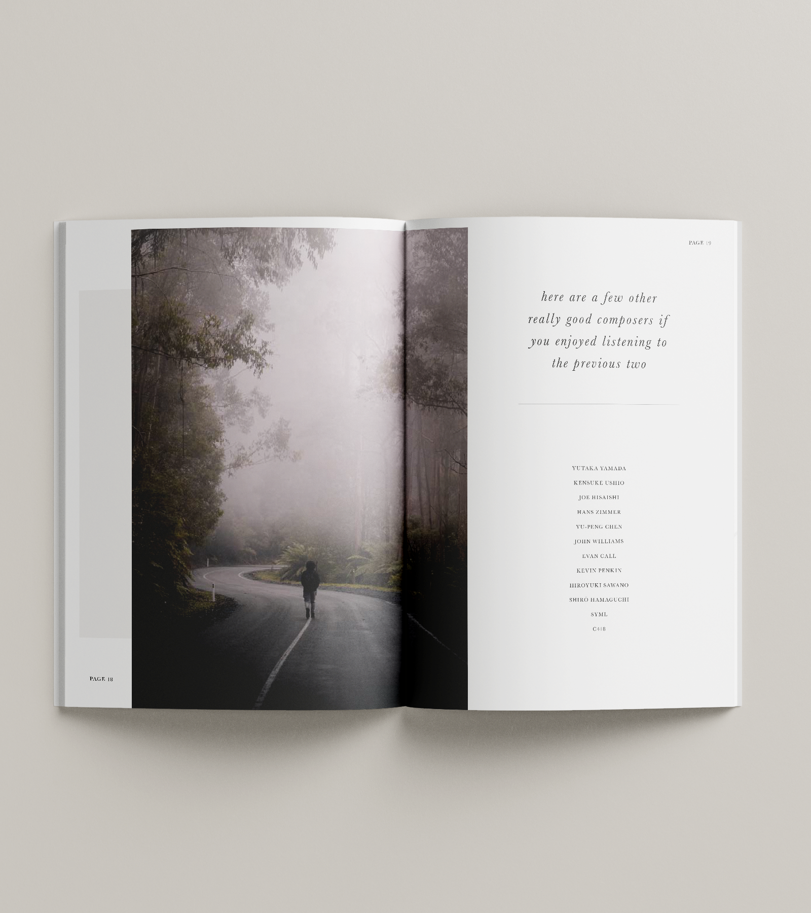 I’ve always been interested in music, so it was an obvious choice for the theme of my magazine. I looked around for inspiration and got fascinated by the simple and ‘less-is-more’ style that I could see in a lot of Japanese magazines and posters. Since the music I wanted to showcase in this magazine issue was more atmospheric and harmonious, I tried to keep the color scheme muted and gave space around the text to make it airy and calm while reading.