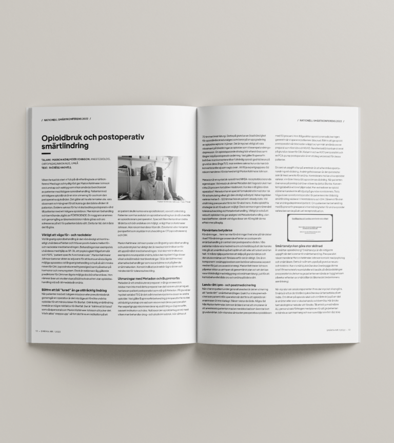 ‘Smärta’ is a magazine for a organisation called SSOS – Svergies Sjuksköterskor inom Området Smärta (Swedish nurses that specialize in pain). We went for a clean and monotone style of this magazine. The colors were kept monotone with an orange-red accent color. I did the layout for the first half of this magazine.
